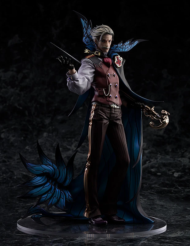 Summon Archer/James Moriarty to your collection with this 1/7 scale figure of the dapper Servant from Fate/Grand Order! Created by Orange Rouge, James stands 9.8” tall in his gentlemanly suit with all his charismatic charm on display as he holds his cane sword behind his back on one hand as his meticulously sculpted butterfly-themed cloak rests off of his shoulder and drapes behind him. Highlights include the pearl paintwork that brings out the detail in his cloak and gives it a scale-line shimmer, the intricate detailing of his cane sword’s hilt, and his dashing and bold expression. Add him to your collection!