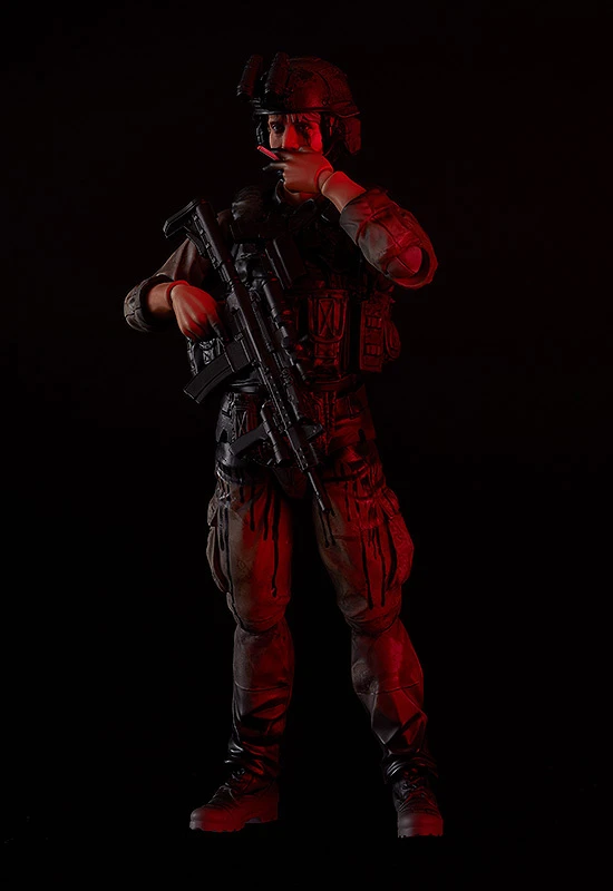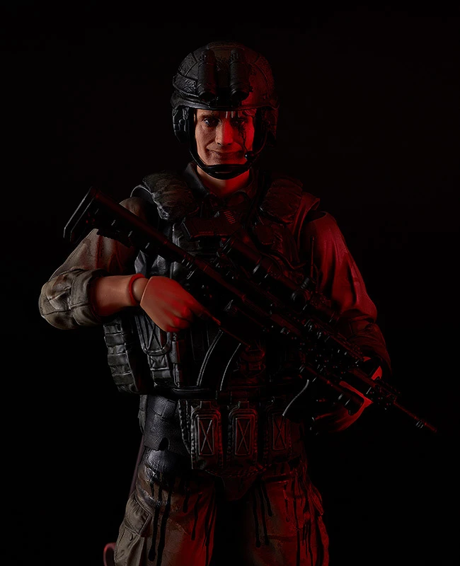 He comes with two face plates to display him looking serious or grinning while wearing a helmet, and optional parts include an assault rifle, skeleton head part, cigarette, interchangeable hand parts, and an articulated stand so you can recreate your favorite memorable scenes and situations. Don’t miss out on adding him to your collection!
